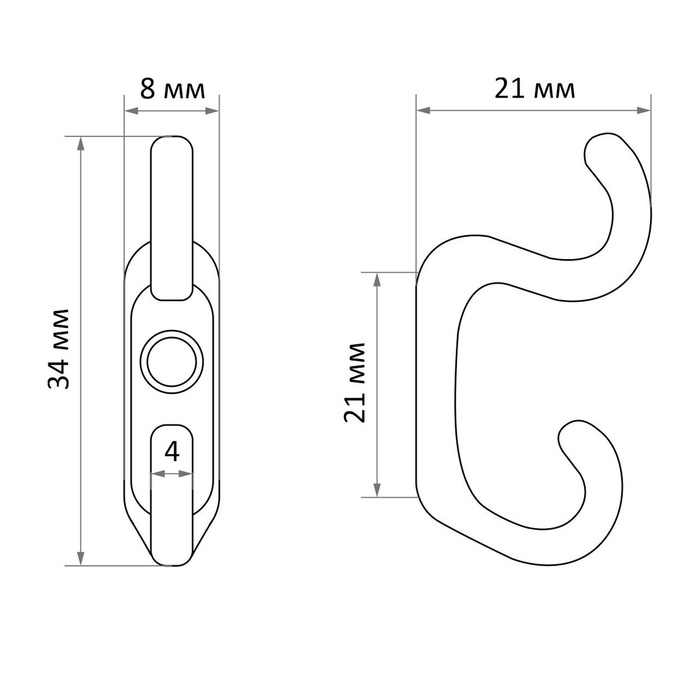 Крючок мебельный ТУНДРА TKD010, двухрожковый, хром, 10 шт TMP