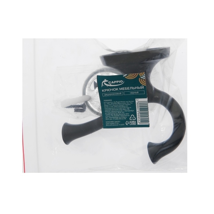 Крючок мебельный CAPPIO VALUE, двухрожковый, цвет черный, 4 шт.