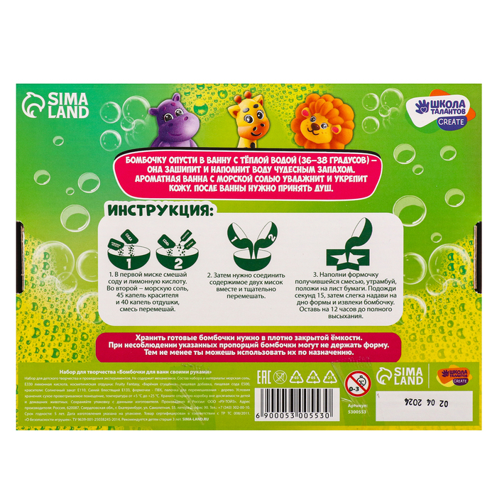 Набор для творчества «Бомбочки для ванн своими руками. Дружные зверята» 3 формы