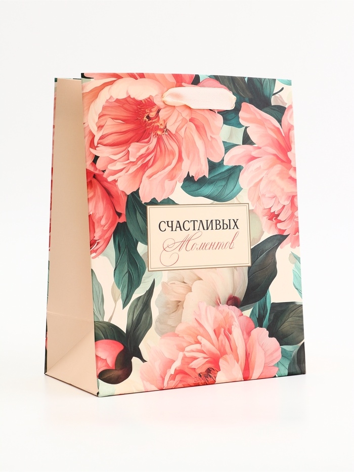 Пакет подарочный вертикальный "Счастливых моментов", 18 х 23 х10 см
