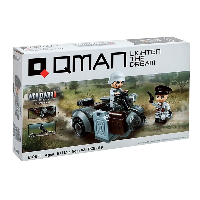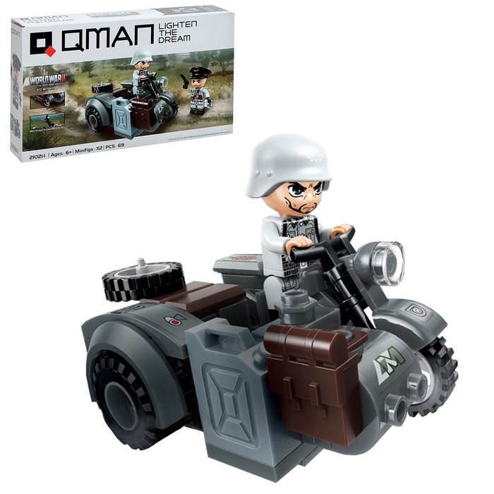 Конструктор блочный Вторая мировая война «Военный мотоцикл», 69 деталей