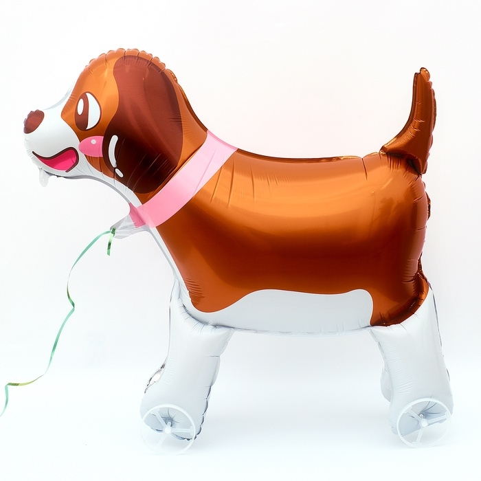 Шар фольгированный фигура 32" "Собачка в ошейнике", на колесиках