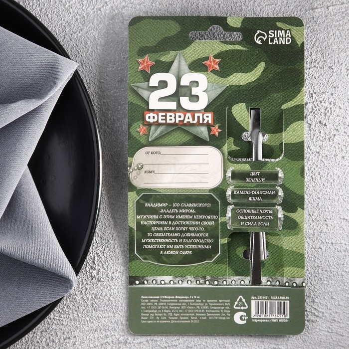 Для особых случаев — особый подарок. Ложка чайная с гравировкой с 23 Февраля «Владимир», 3 х 14 см. может украсить ваше чаепитие, обед или ужин, сделать каждую встречу неповторимой.