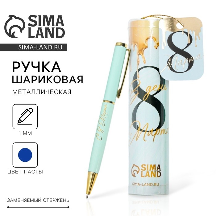 Ручка шариковая, синяя паста, 1.0 мм, металлическая в тубусе «В день 8 Марта»