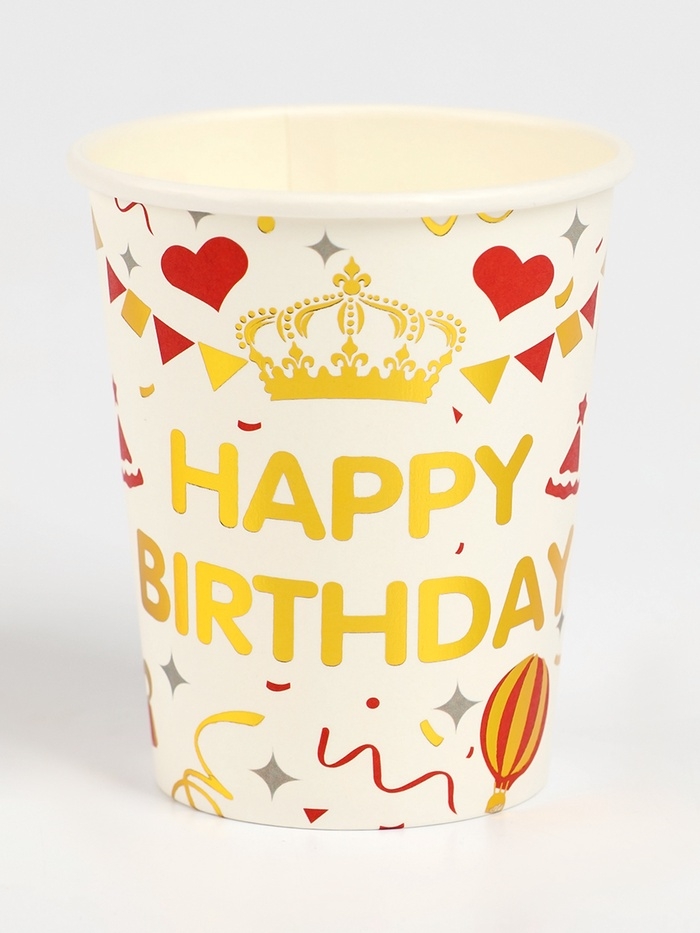 Набор бумажной посуды "С днём рождения", набор 12 шт., цвет белый