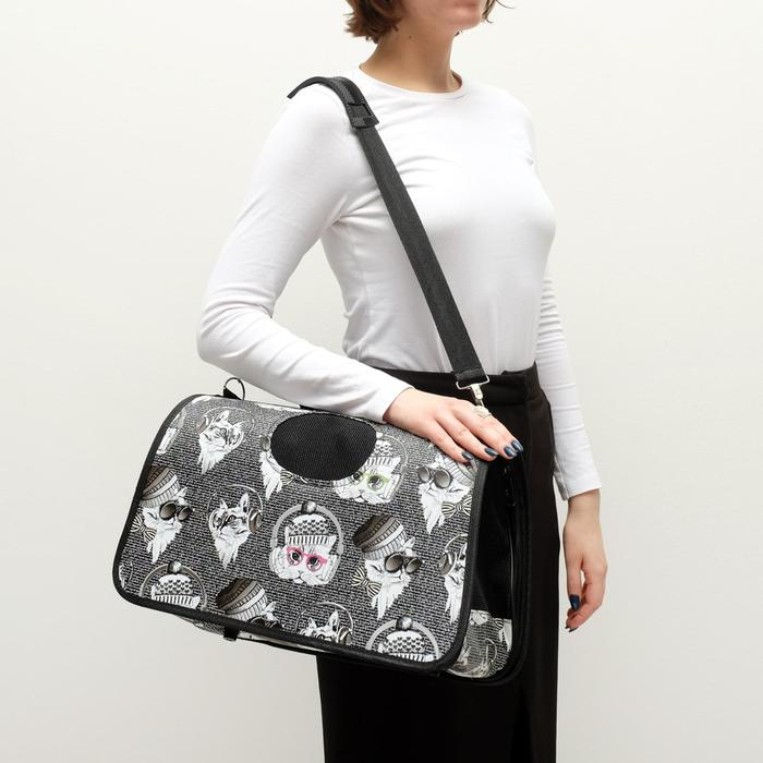 Сумка - переноска для животных "Зимние коты", размер M, 40 х 21 х 27 см