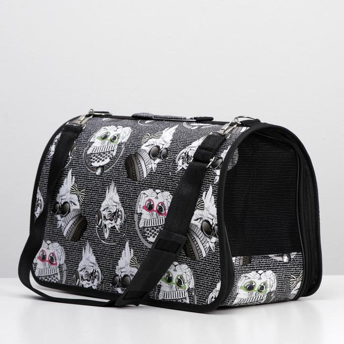 Сумка - переноска для животных "Лапки Happy", чёрная, размер М, 40 х 21 х 27 см