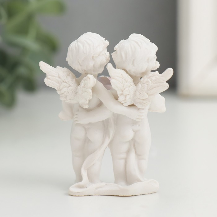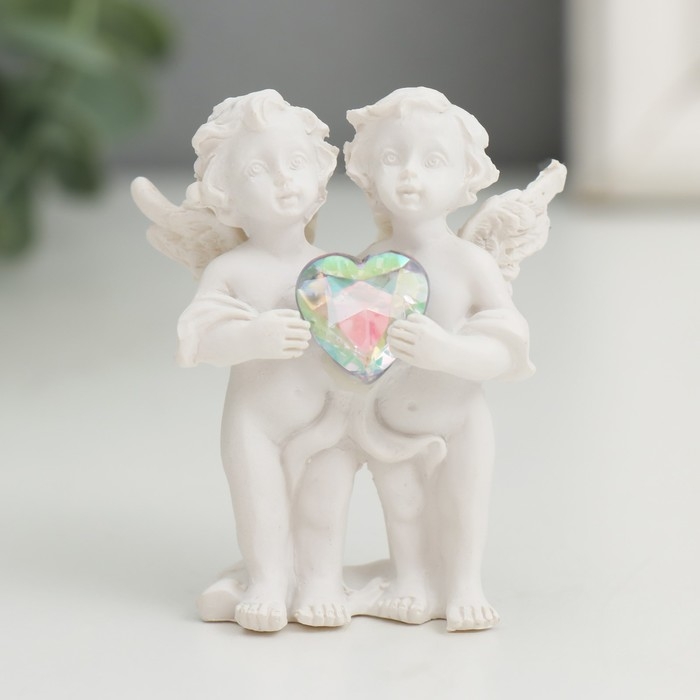 Сувенир полистоун "Белоснежные ангелы хрустальное сердце" 5,6х4,3х2,3 см