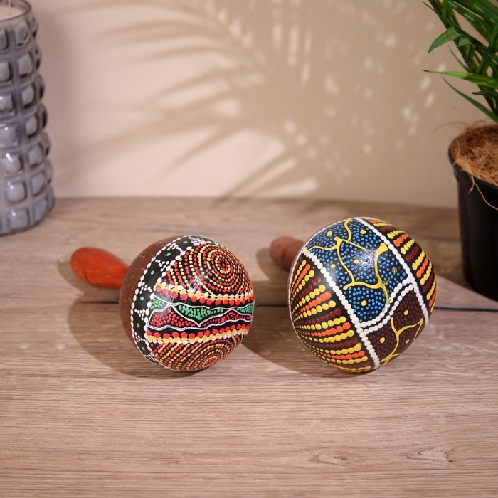 Сувенирный музыкальный инструмент "Маракас с 5 шариками" 10х27х10 см