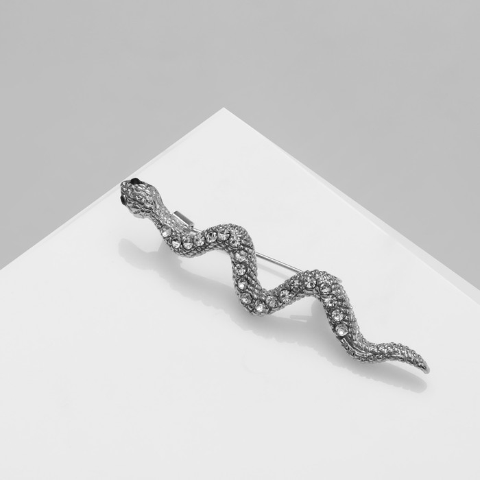 Брошь «Змейка», цвет белый в серебре