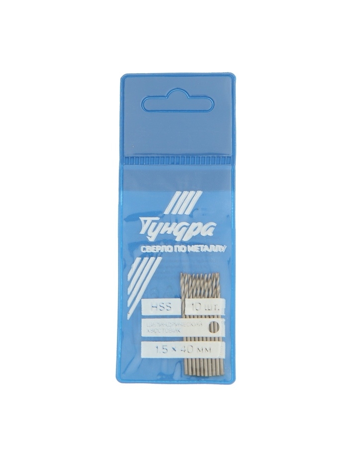 Сверло по металлу ТУНДРА, HSS, цилиндрический хвостовик 1.5 х 40 мм, 10 шт.