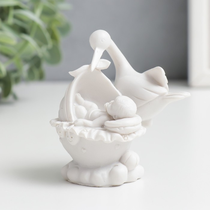 Фигурка полистоун "Аист с малышом" 7,5х5х6,2 см