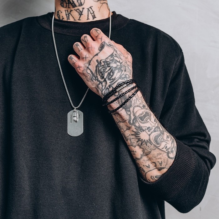 Браслет унисекс «Кожаное плетение», цвет чёрный с серебром, 82 см