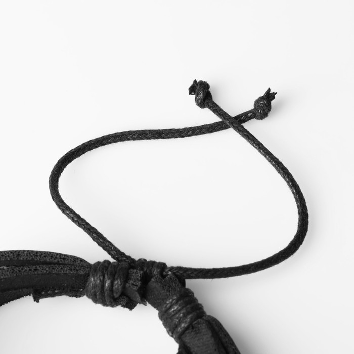 Браслет кожа «Сова» и листок, цвет чёрный, d=6 см