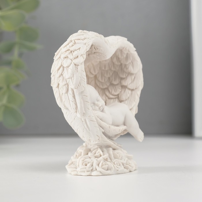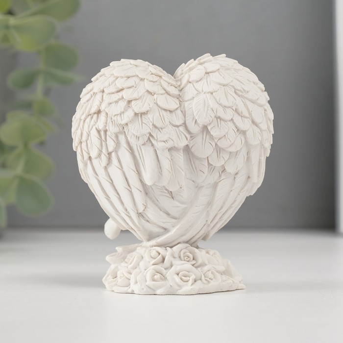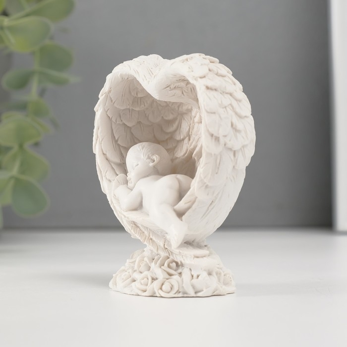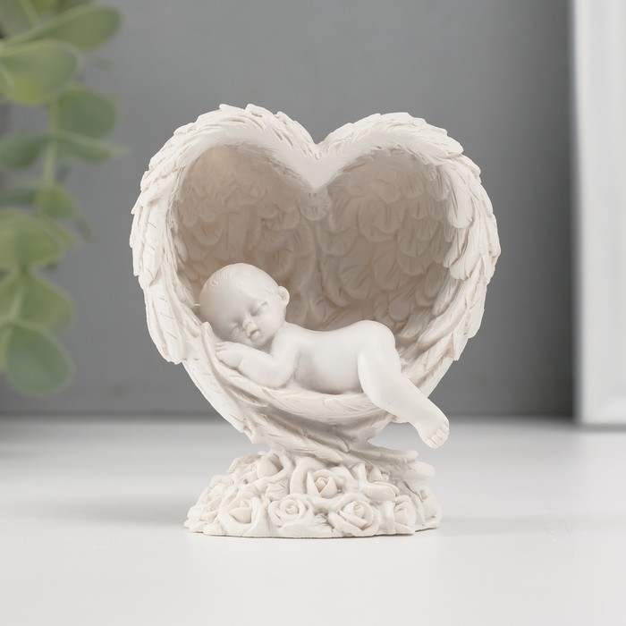 Сувенир полистоун "Малыш спящий в сердце из крыльев" белый 7,8х6,8х4 см