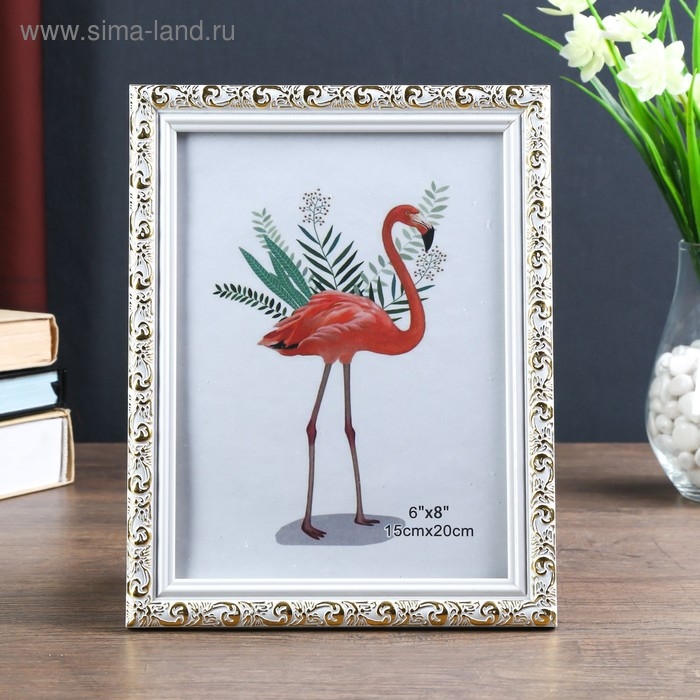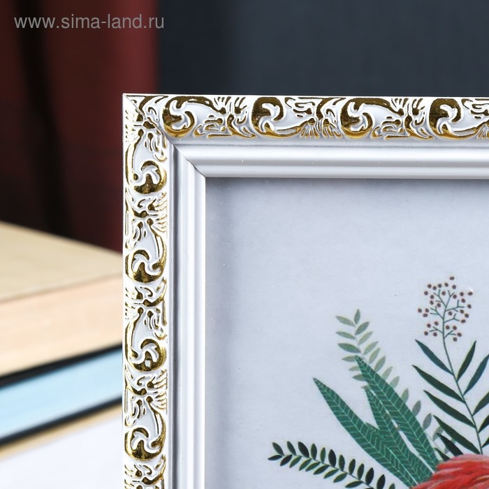 Фоторамка пластик 15х20 см "Валентайн" белая с золотым рисунком 23х18 см