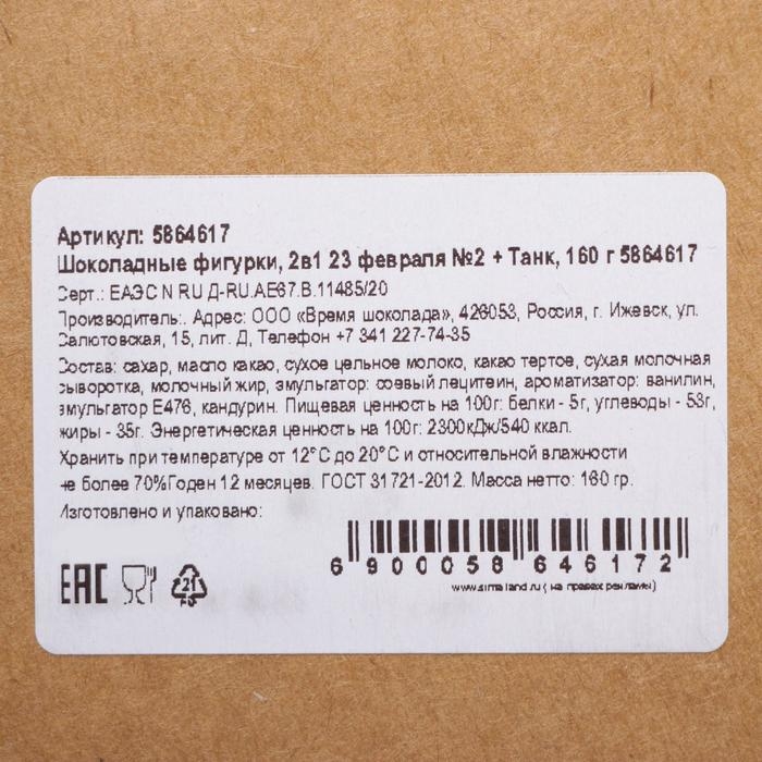 Бельгийский шоколад, 2 в 1 «23 февраля №2 + Танк», 160 г