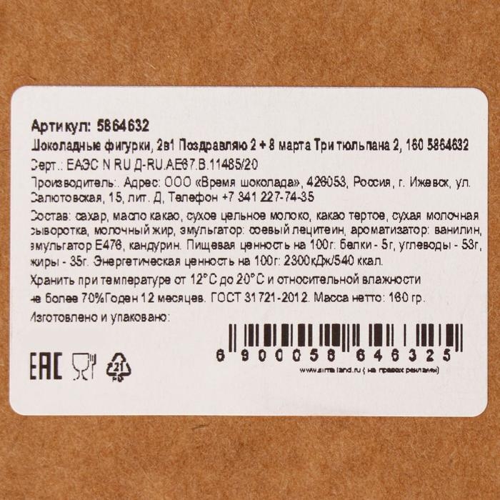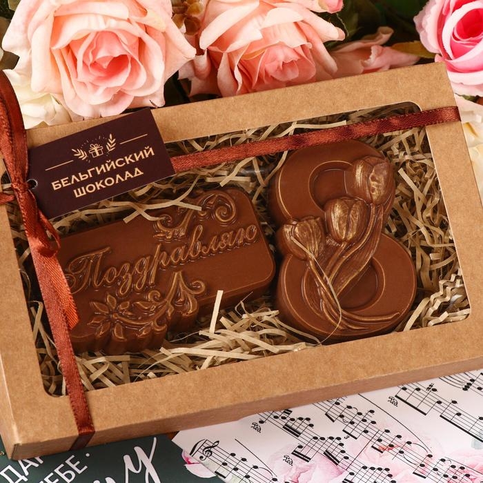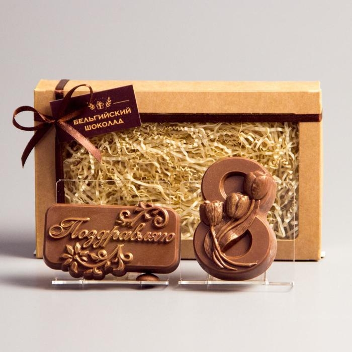 Бельгийский шоколад, 2 в 1 «Поздравляю + Восьмёрка и тюльпаны», 160 г