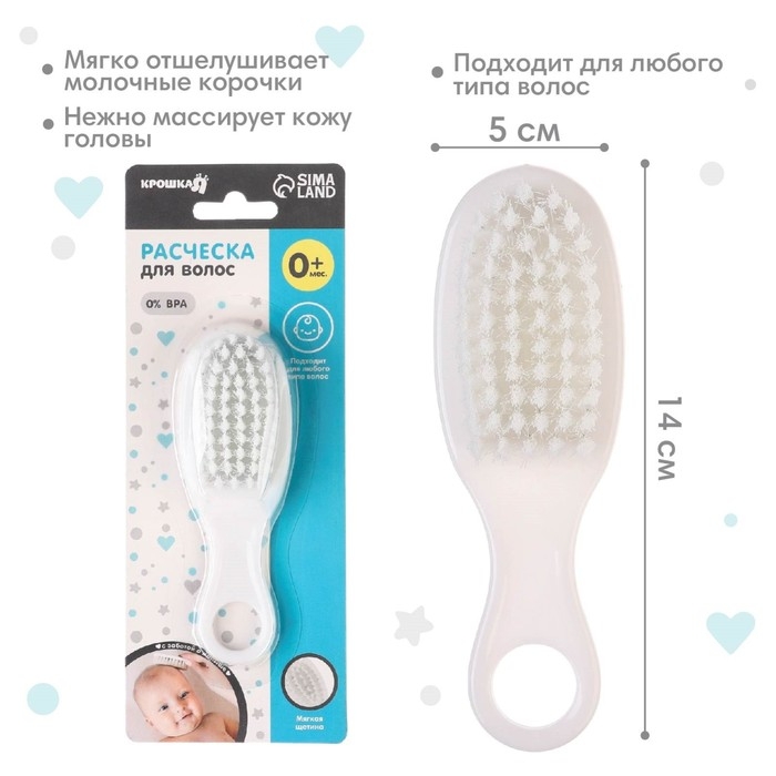 Мягкая пушистая щетка имеет удобную эргономичную ручку, улучшает кровообращение кожи головы, не царапая её. Нежный массаж расслабляет и успокаивает перед сном, а стимуляция волосяных луковиц ускоряет рост первых волос малыша. Щетка с мягким ворсом позволит пригладить волосики и придать им аккуратный вид. А с помощью расчески с частыми закругленными зубчиками удобно расчесывать запутавшиеся и скатавшиеся волосы.