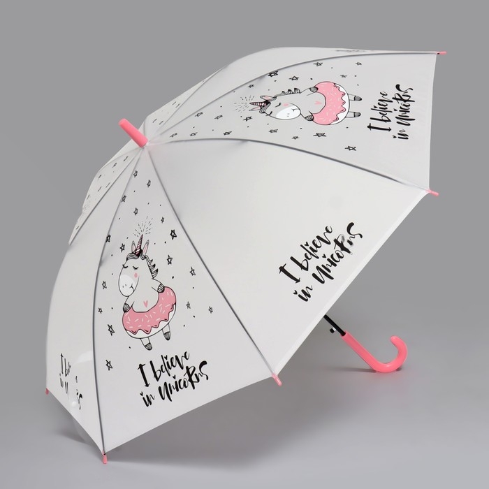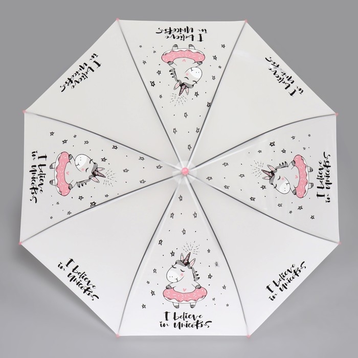 Зонт - трость полуавтоматический «Единорог», 8 спиц, R = 47 см, цвет белый/розовый