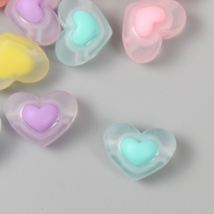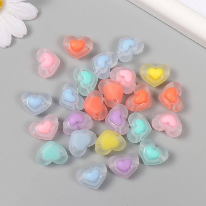 Бусина акрил "Сердце в сердце - матовое" набор 25 шт разноцветные 1х1,7х1,3 см