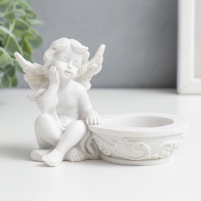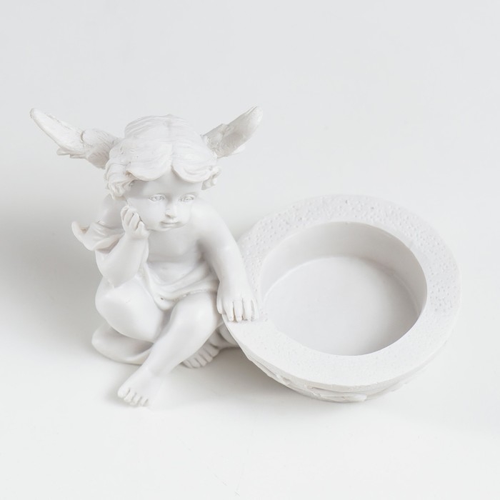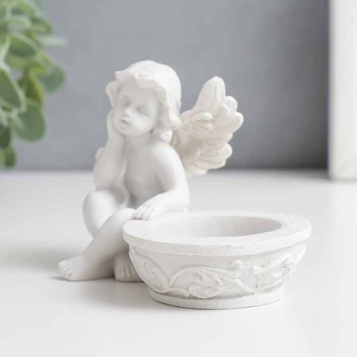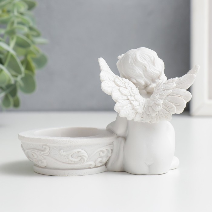 Подсвечник полистоун "Белоснежный ангел в раздумьях" 7,5х9,8х6 см