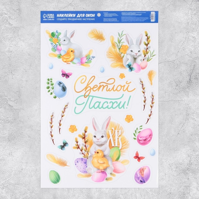 Наклейки витражные «Счастливой Пасхи!», 33 х 50,5 см.