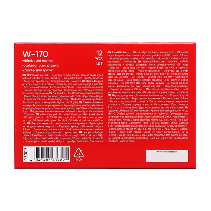 Маркер для досок ErichKrause W-170, 2.0 мм, чернила на спиртовой основе, чёрный