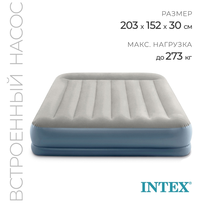 - Кровать оснащена встроенным насосом для быстрого надувания и сдувания, а также имеет клапан для подключения механического насоса.