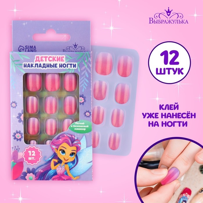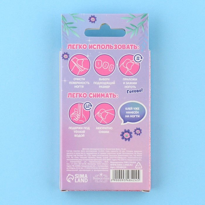 Детские накладные ногти «Сказочная фея», 12 шт