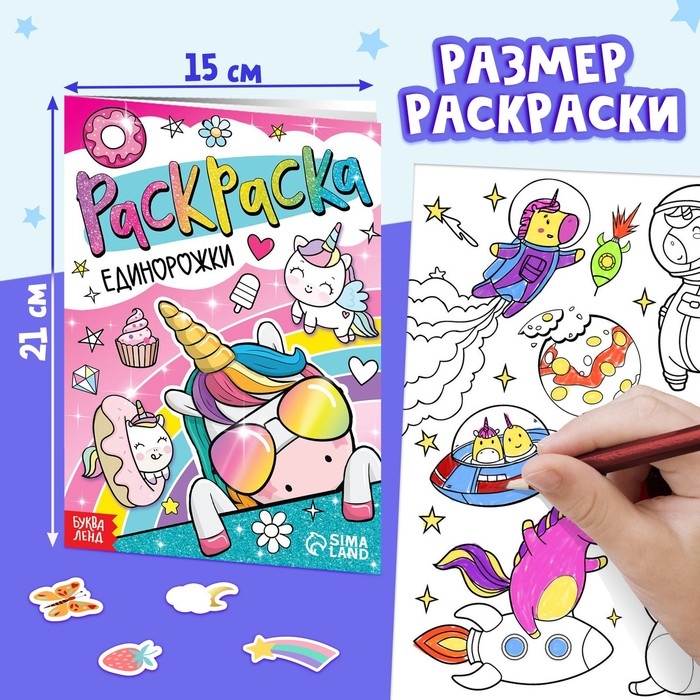 - Раскраска формата A5: 21 × 15 см.