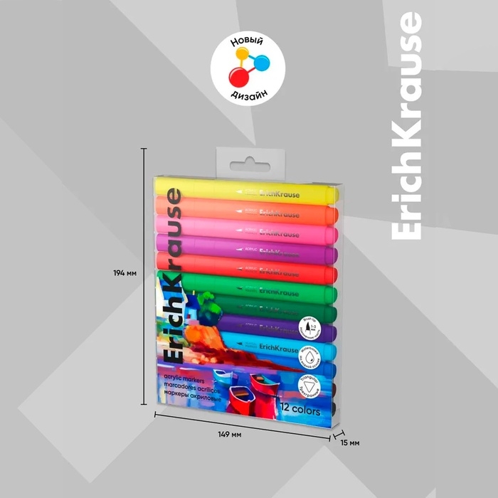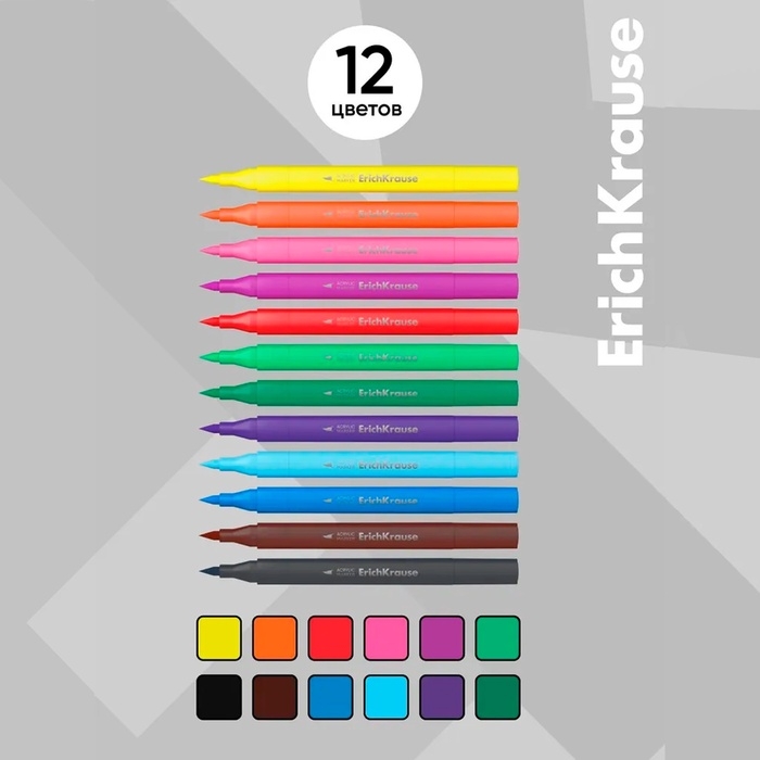 Набор акриловых маркеров ErichKrause. Art Spirit, 12 цветов, c пулевидным наконечником, МИКС