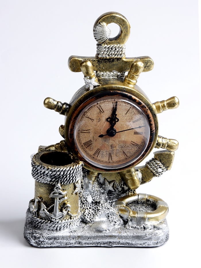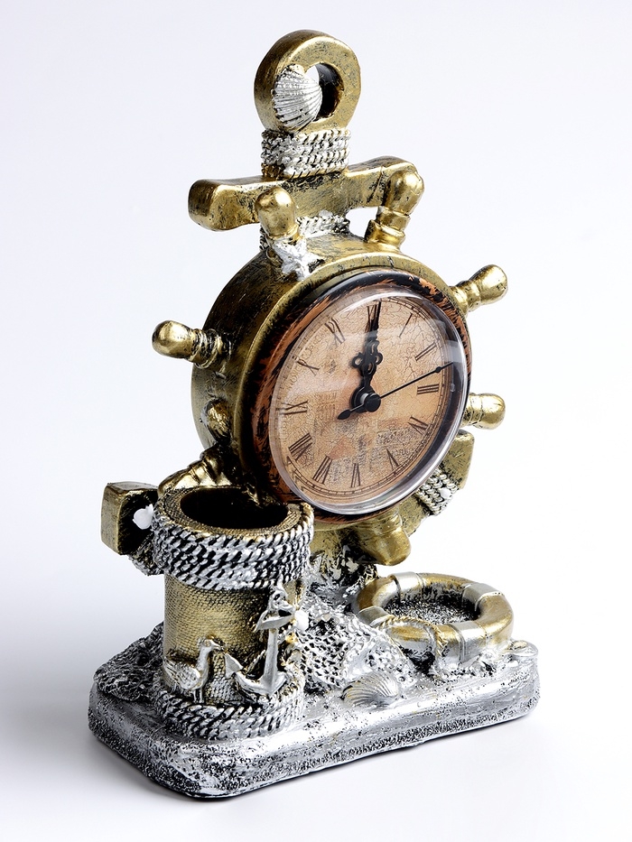 Часы настольные интерьерные, «Штурвал» на батарейках, 13.5×7.5×20.5 см, d-8 см