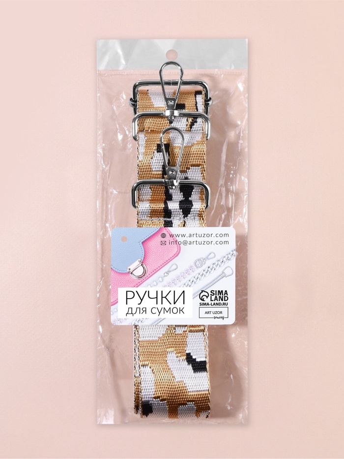 Ручка для сумки стропа с караб-ми 140±1*3,8см орнамент леопард бежевый/серебряный АУ