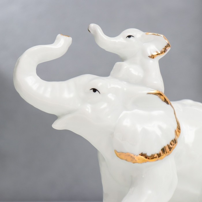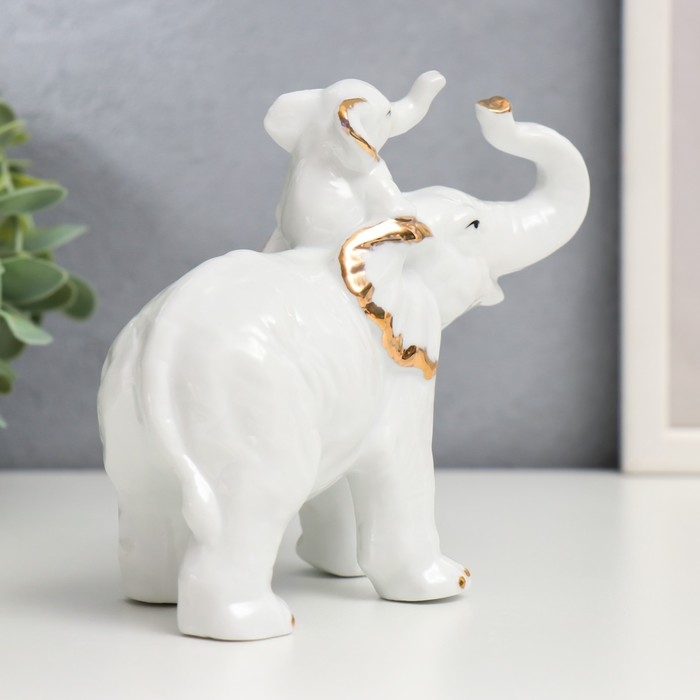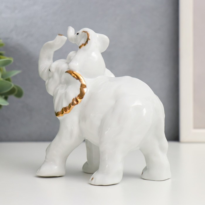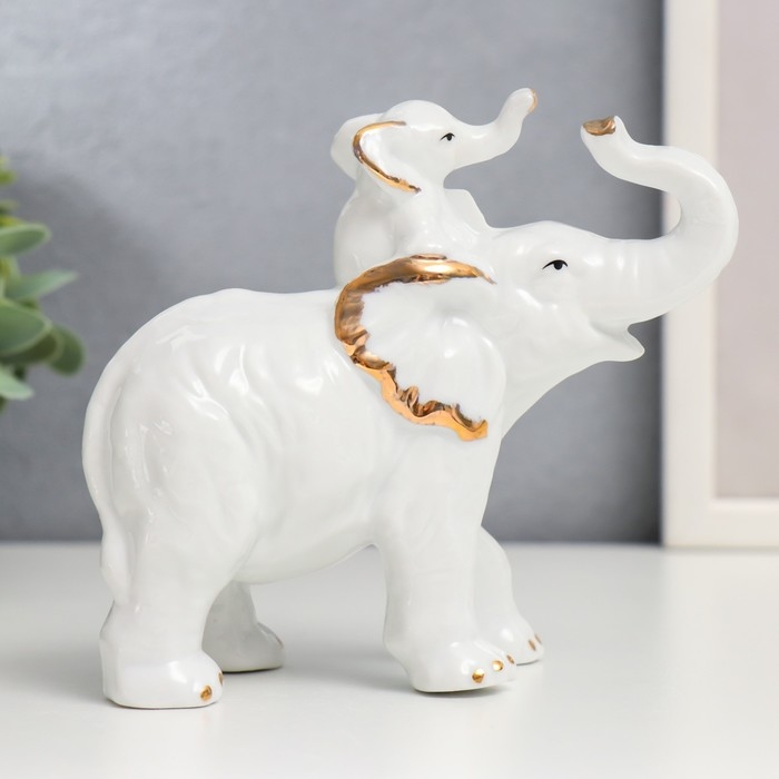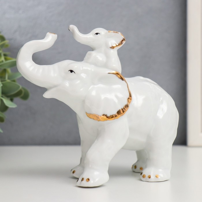 Сувенир керамика "Белый слон золотые ушки со слонёнком" 12х13х6,3 см