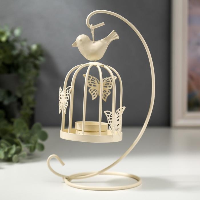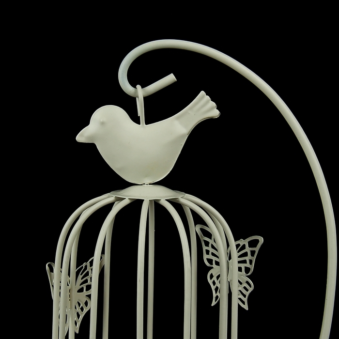 Подсвечник металл "Клетка с птичкой" белая, 23х10х10 см