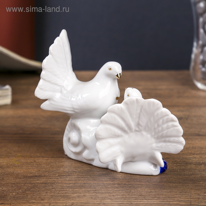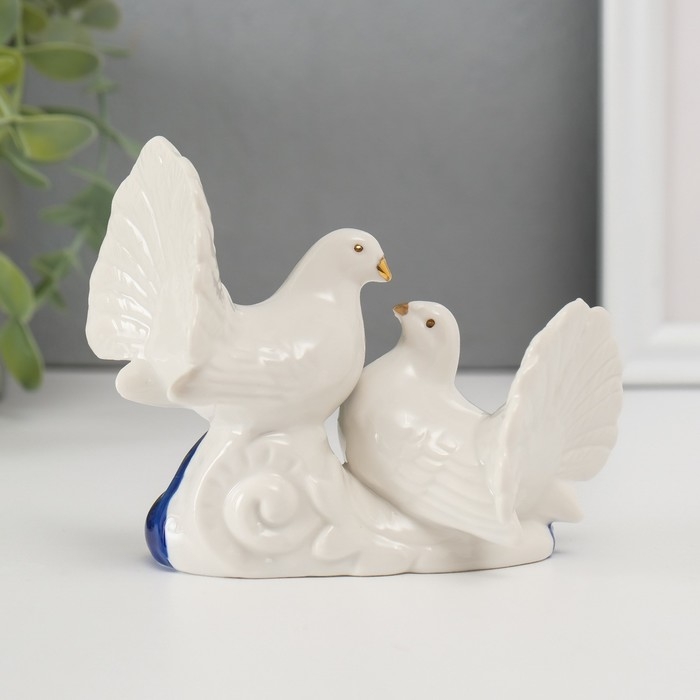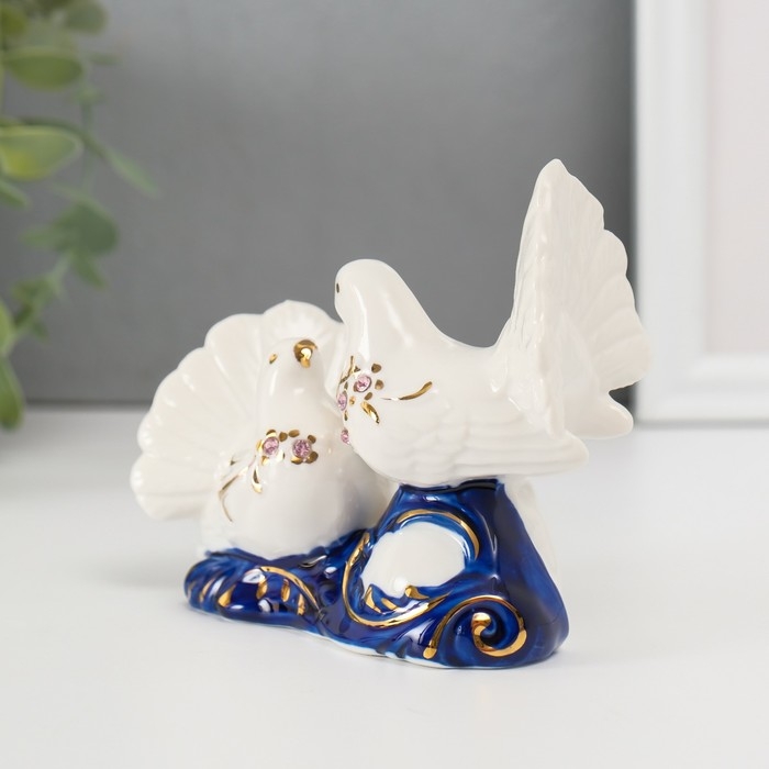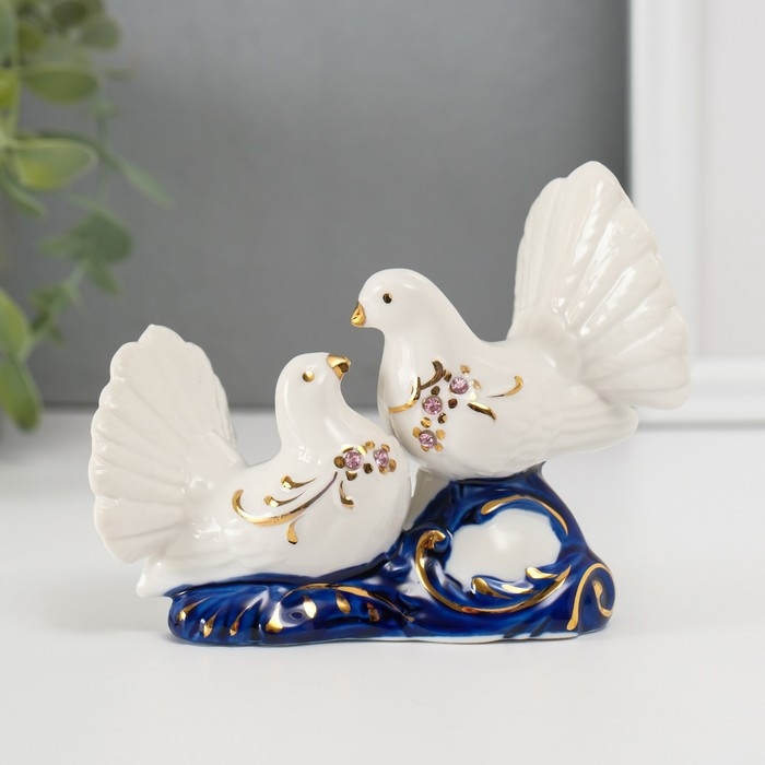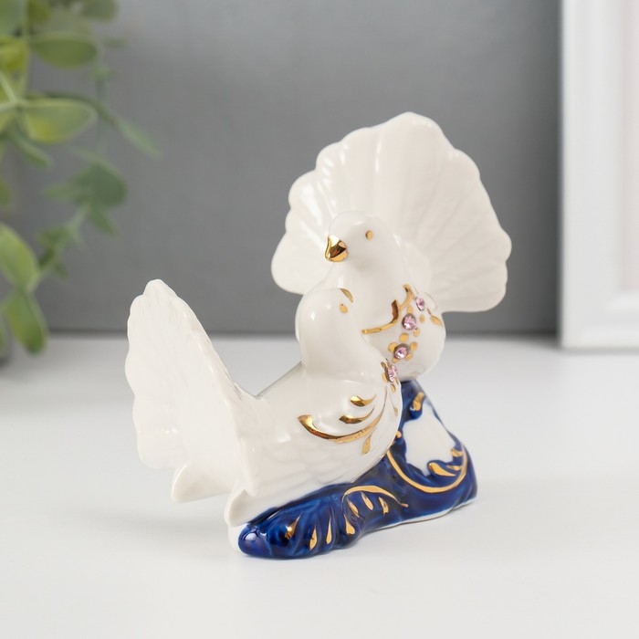 Сувенир керамика "2 голубка" кобальт, стразы 9,2х12х6 см