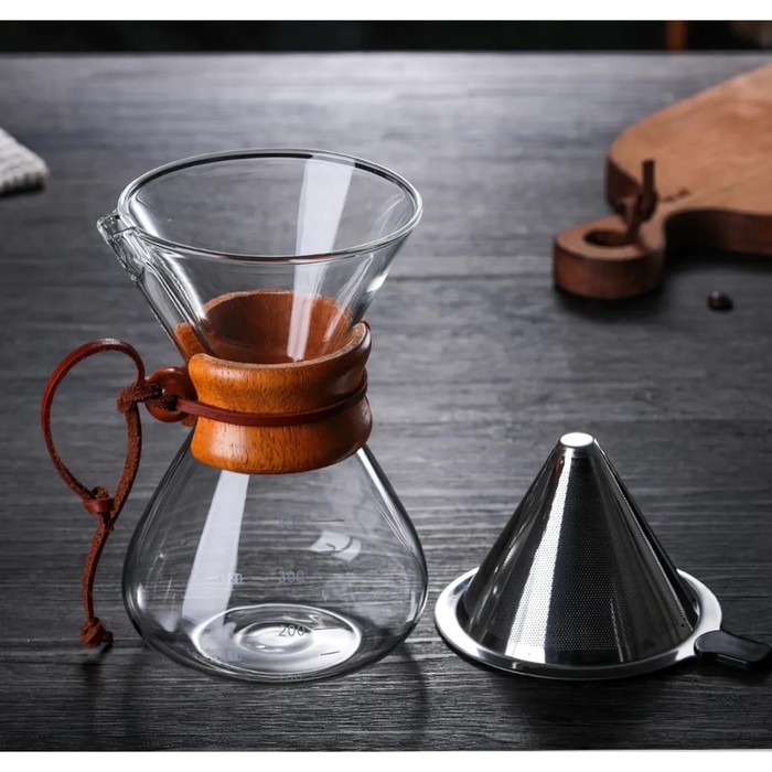 Кемекс стеклянный с мерной шкалой «Типика», 600 мл, с деревянной ручкой