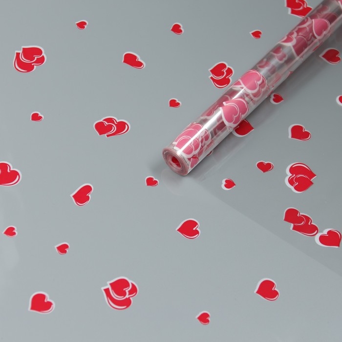 Пленка для цветов "Сердечки" красная 0,7 х 8.2 м, 40мкм