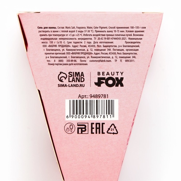 Соль для ванны, 150 г, аромат малинового чизкейка, CANDY FOOD