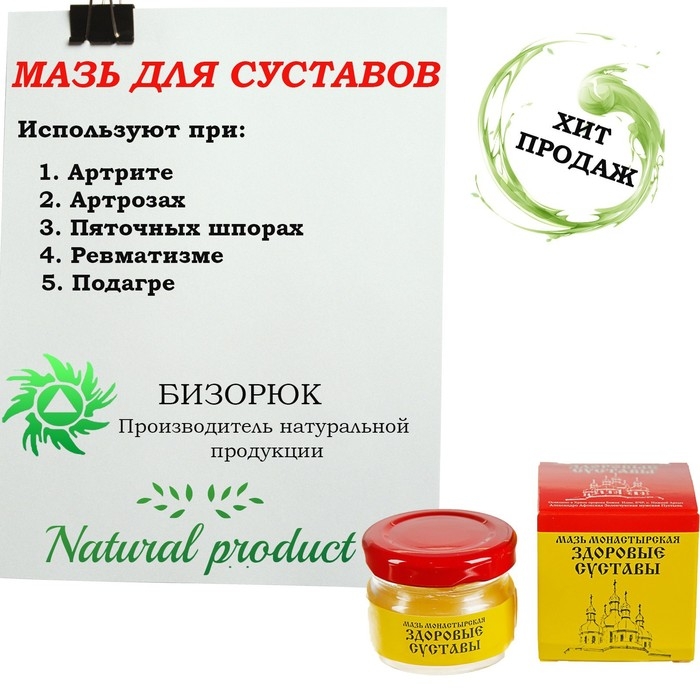 Используйте мазь «Монастырская» при артритах, артрозах, пяточных шпорах, подаграх, ревматизме и боли в суставах.