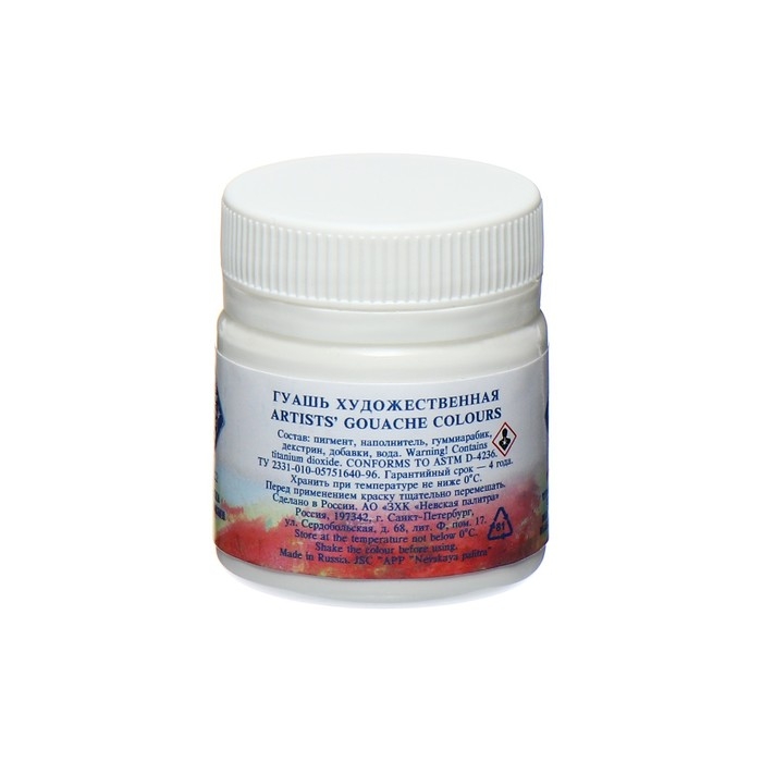 Гуашь художественная в банке 40 мл, ЗХК "Мастер класс", белила титановые (1720101)