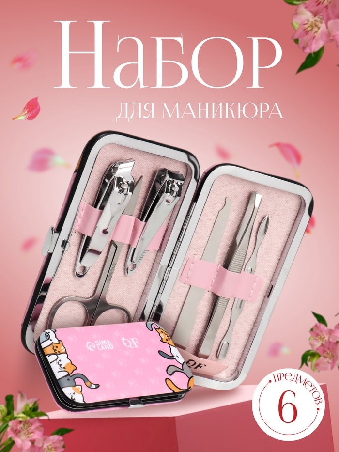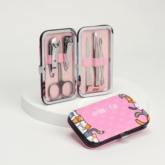 Набор маникюрный «Кошечки», 6 предметов, в футляре, рисунок и цвет МИКС