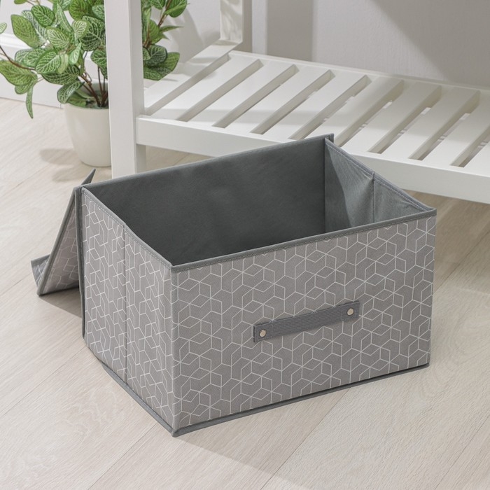 Короб стеллажный для хранения с крышкой Доляна «Фора», 40×30×25 см, цвет серый