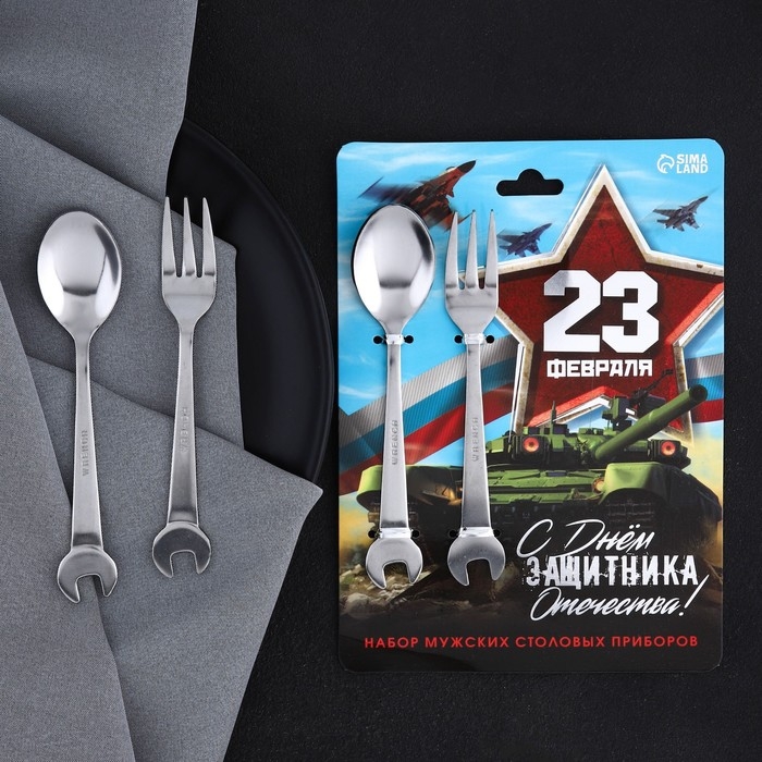 Набор столовых приборов: ложка и вилка «С Днём защитника Отечества!».