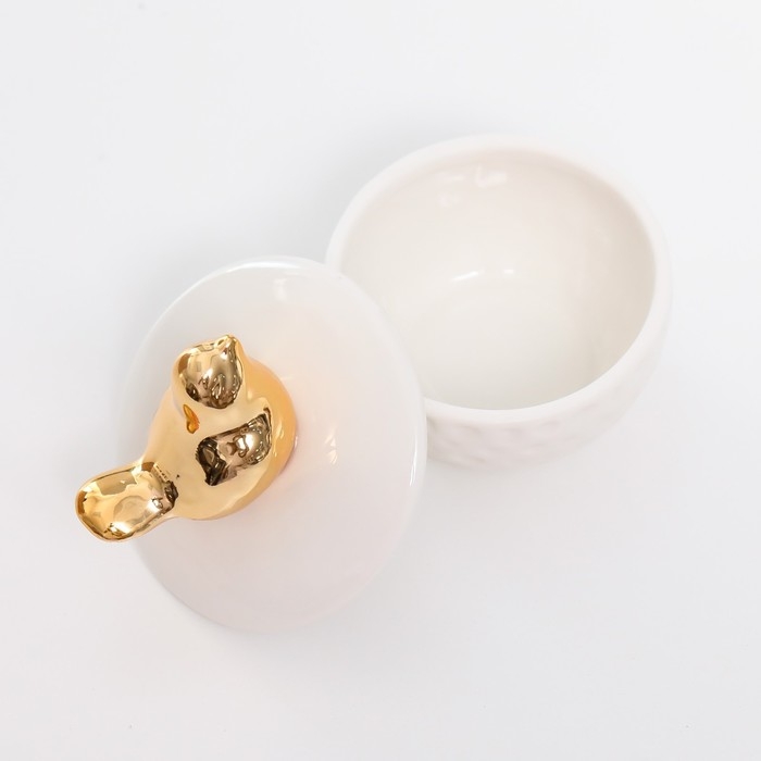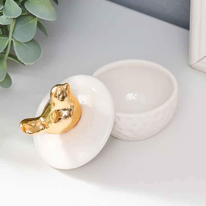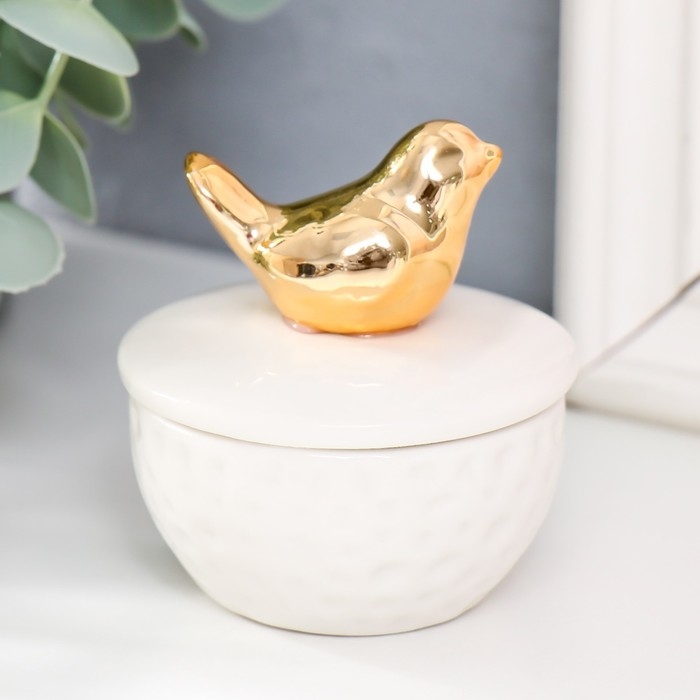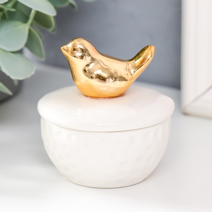 Шкатулка керамика "Золотая птичка" белая 6,5х6,5х7 см