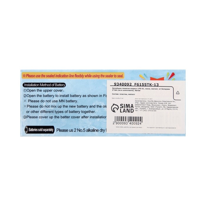 Запайщик пакетов LPS-01, мини, магнит, от батареек 2*АА (не в комплекте), белый