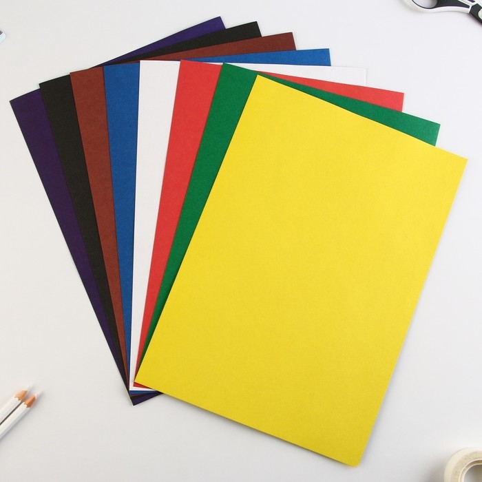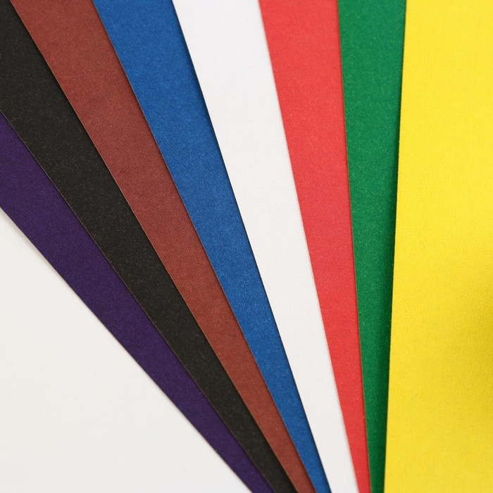 Картон цветной А4, 8 листов, 8 цветов, немелованный 370 г/м2, в папке