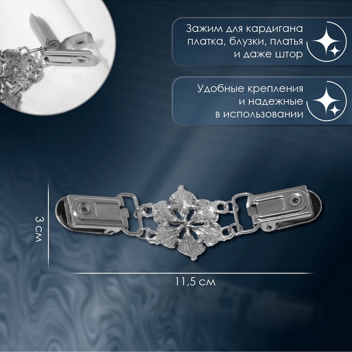 Зажим для кардигана «Бермуды», цвет белый в серебре