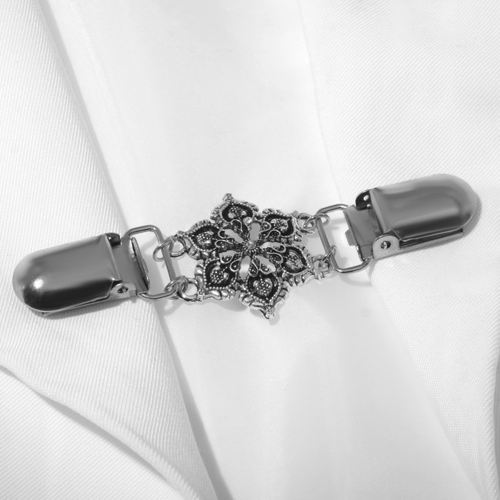 Зажим для кардигана «Цветение», цвет чернёное серебро
